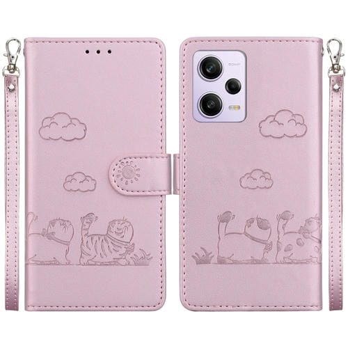 Funda de Cuero Rfid con Diseño de Gatos Lindos para Redmi Note 12 Pro 5G (Oro Rosa)