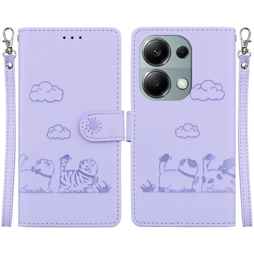Funda de Cuero Rfid con Diseño de Gatos para Redmi Note 13 Pro 4G (Morada)