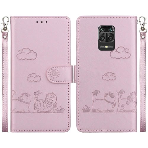 Funda de Cuero Rfid con Diseño de Gatos para Redmi Note 9 Pro (Oro Rosa)