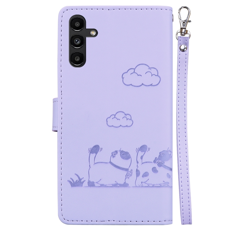 Funda Cuero Rfid Samsung Galaxy A13 5G Diseño Gatos (Morado)