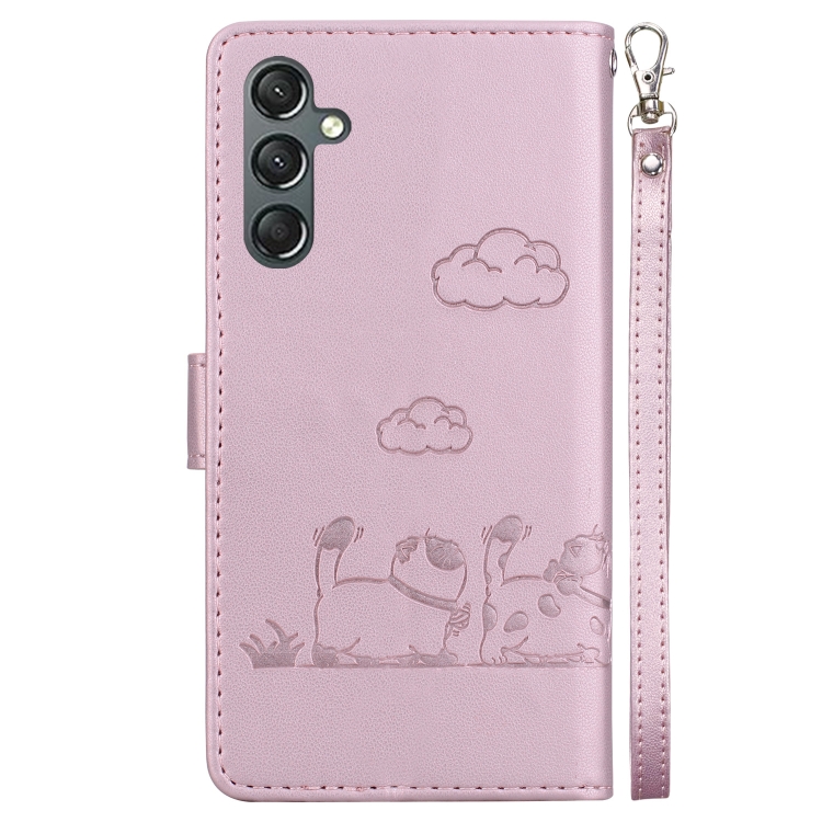 Funda Cuero Rfid Samsung Galaxy A25 5G Diseño Gatos Lindos (Oro Rosa)