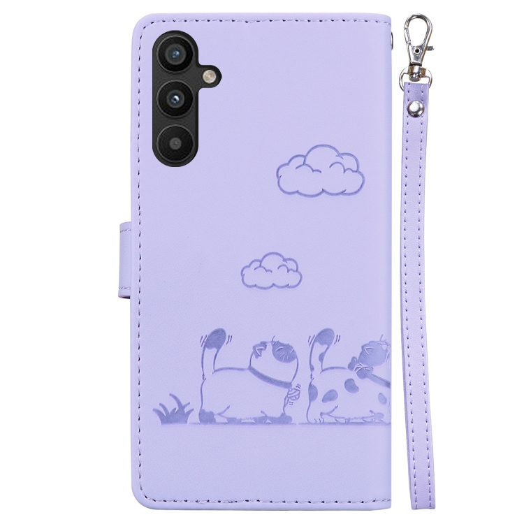 Funda Cuero Rfid Samsung Galaxy A55 5G Diseño Gatos (Morado)