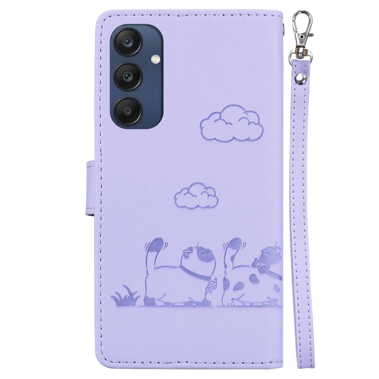 Funda Cuero Rfid Samsung Galaxy M35 Diseño Gatos (Morado)