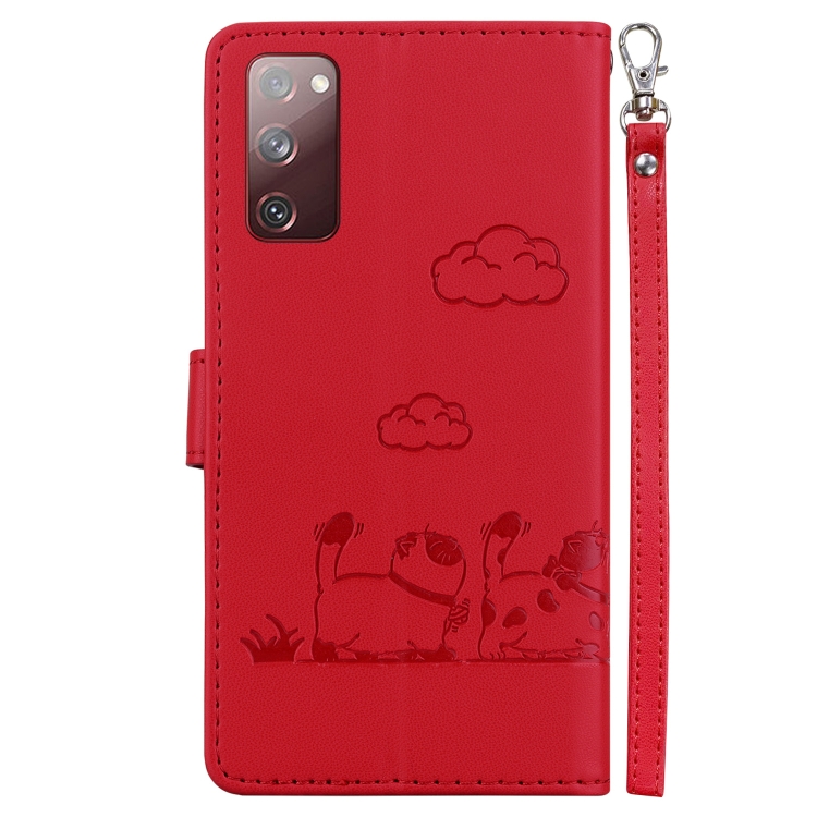 Funda Cuero Rfid Samsung Galaxy S20 FE Diseño Gatos Lindos (Rojo)