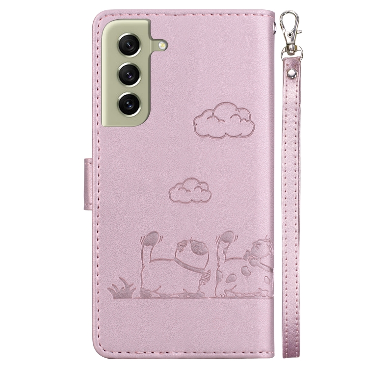 Funda Cuero Rfid Samsung Galaxy S21 5G Diseño Gatos Lindos (Oro Rosa)
