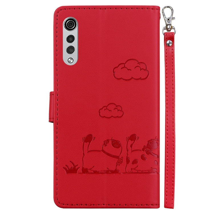 Funda de Cuero Rfid con Diseño de Gatos para LG Velvet/G9 4G/G9 5G (Roja)