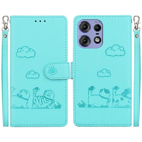 Funda de Cuero Rfid para Motorola Edge 50 Pro con Diseño de Gatos (Verde)