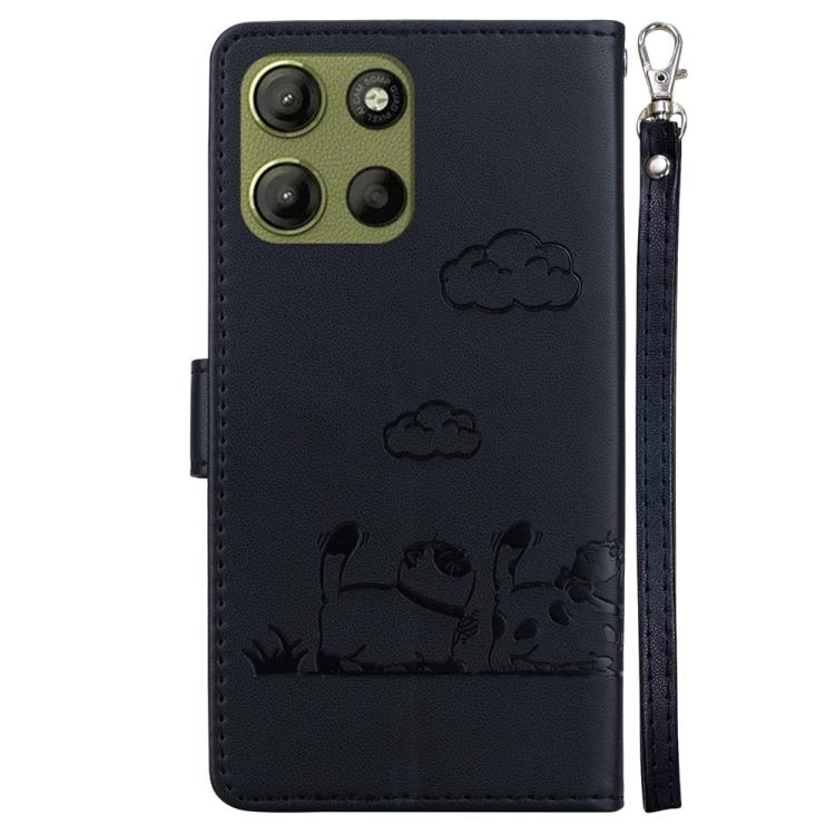 Funda de Cuero Rfid para Motorola Moto G15 con Diseño de Gatos (Negra)