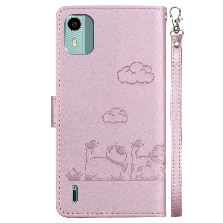Funda de Cuero Rfid para Nokia C12 con Diseño de Gatos (Oro Rosa)
