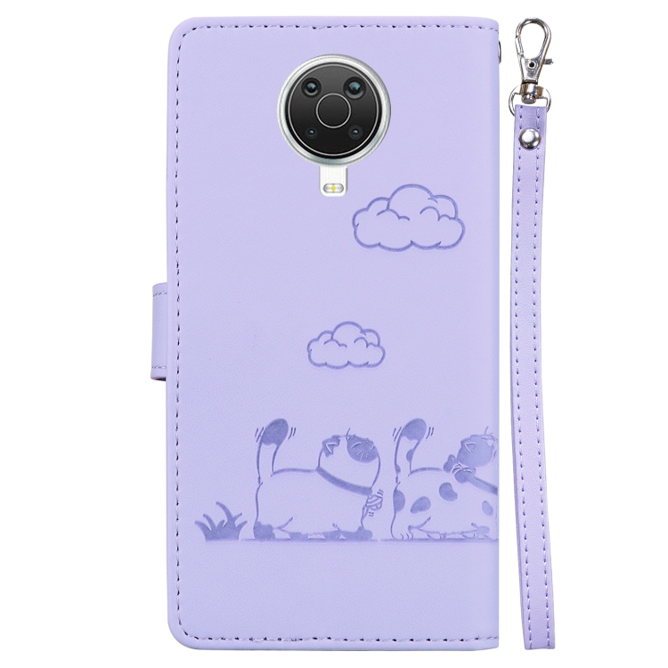 Funda de Cuero Rfid para Nokia G10/G20 con Diseño de Gatos (Morado)