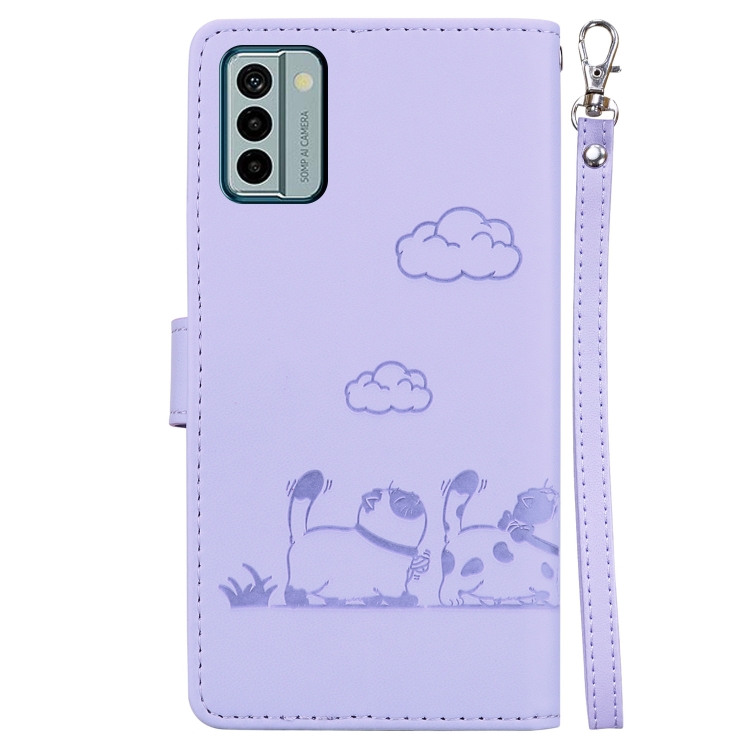 Funda de Cuero Rfid para Nokia G22 con Diseño de Gatos (Morado)