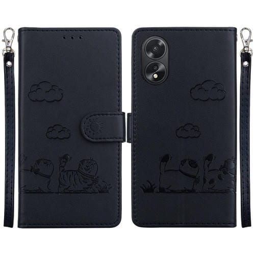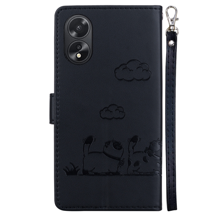 Funda de Cuero Rfid con Diseño de Gatos para Oppo A38 4G/A18 (Negra)