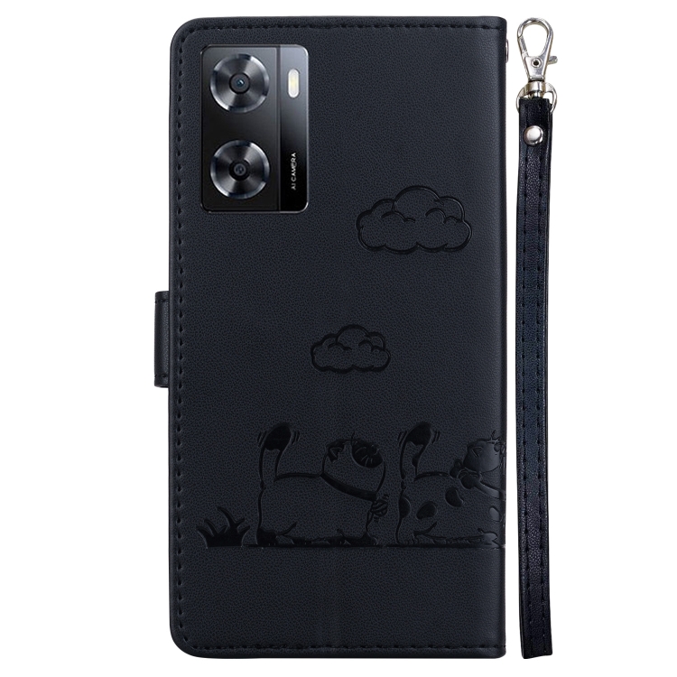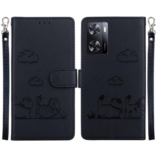 Funda de Cuero Rfid con Diseño de Gatos para Oppo A57 5G / A77 5G (Negra)