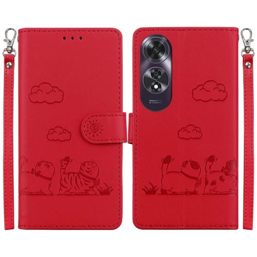 Funda de Cuero Rfid con Diseño de Gatos para Oppo A60 4G (Roja)