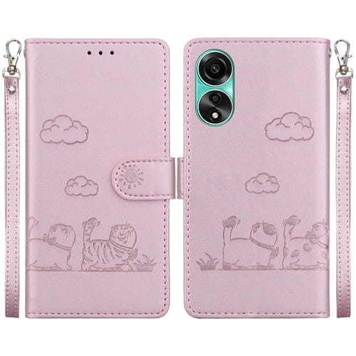 Funda de Cuero Rfid con Diseño de Gatos para Oppo A78 4G (Oro Rosa)