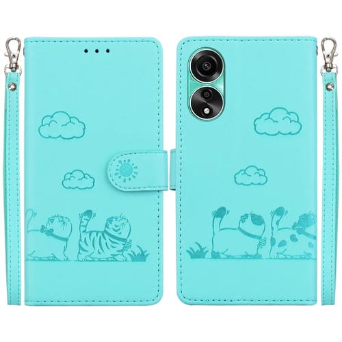 Funda de Cuero Rfid con Diseño de Gatos para Oppo A78 4G (Verde)