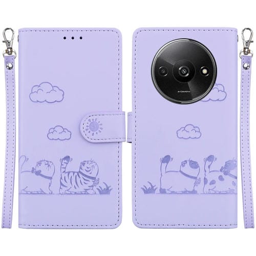 Funda de Cuero Rfid con Diseño de Gatos para Redmi A3 (Morado)