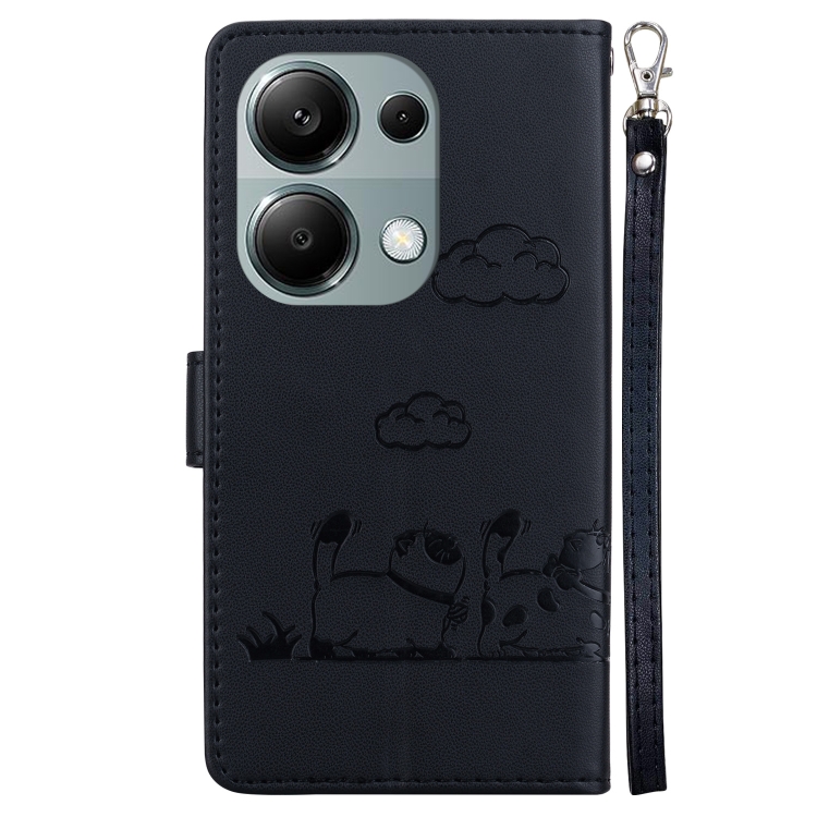 Funda de Cuero Rfid con Diseño de Gatos para Xiaomi Poco M6 Pro 4G (Negra)