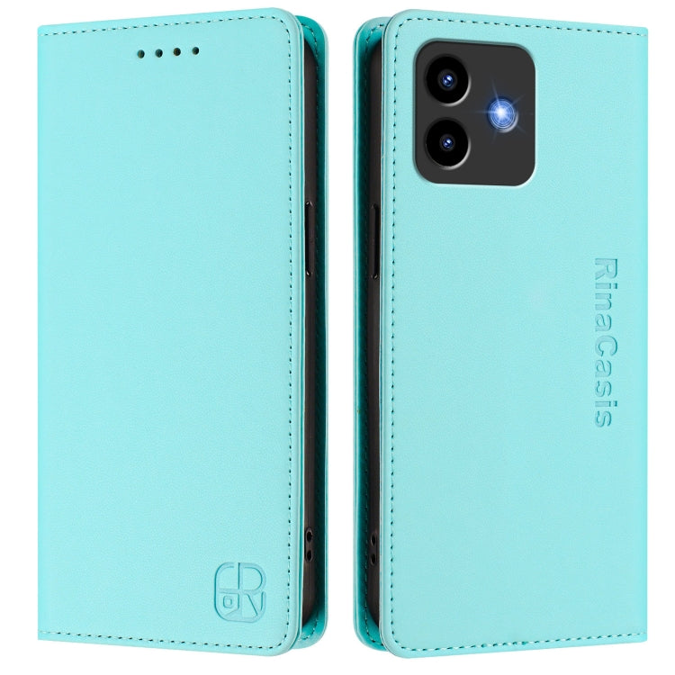 Funda de Cuero Rfid Cubot Note 40 Rc01 con Doble Pliegue y Succión Magnética (Verde Menta)