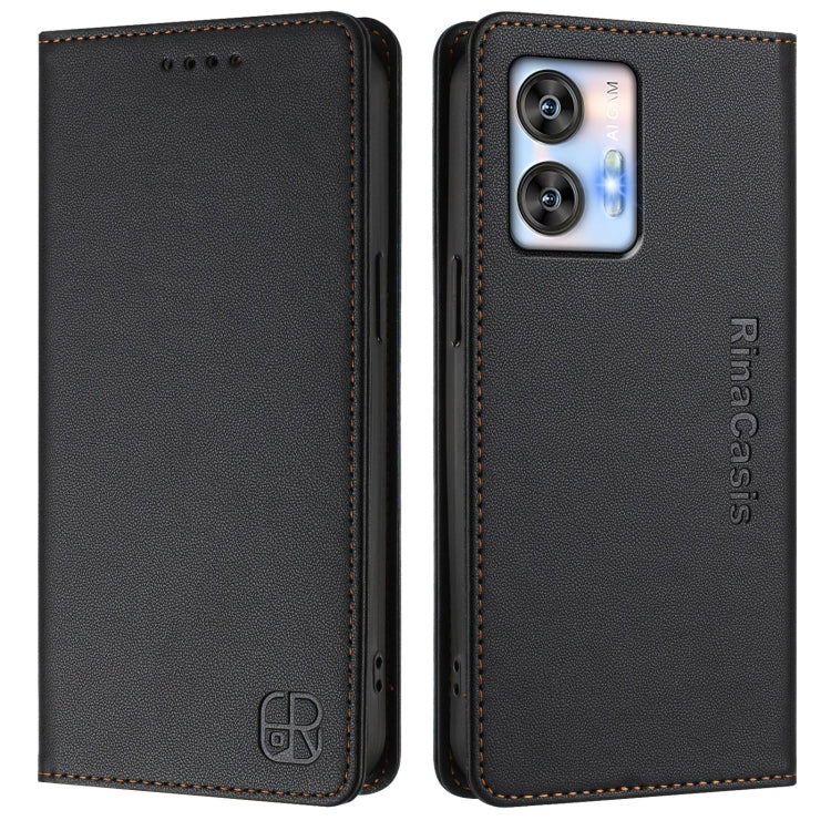 Funda de Cuero Rfid con Doble Pliegue y Succión Magnética para Oukitel C35 Rc01 (Negra)