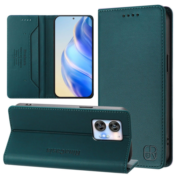 Funda de Cuero RFID con Doble Pliegue y Succión Magnética para Oukitel C35 Rc01 (Verde Oscuro)
