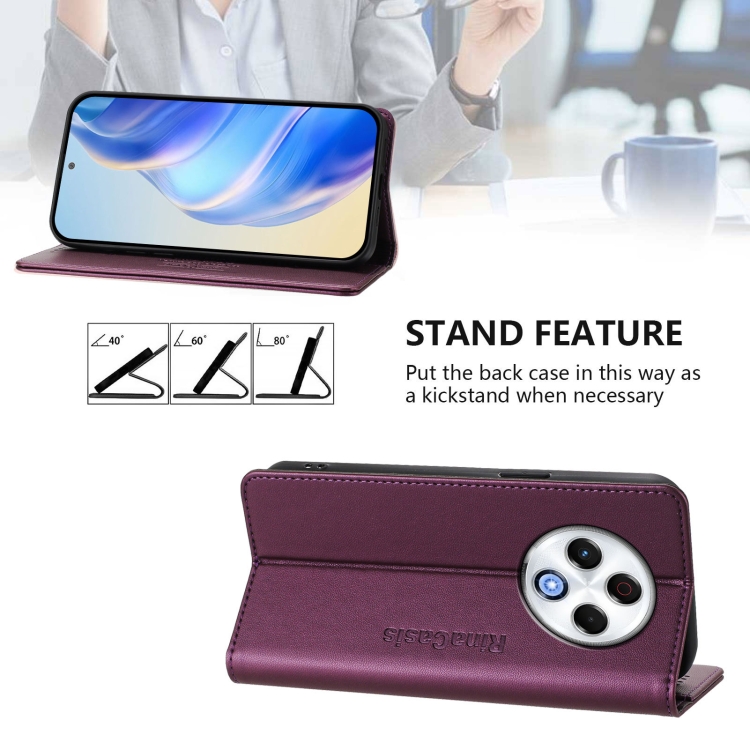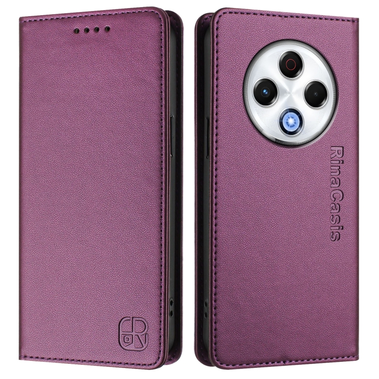 Funda de Cuero con Doble Pliegue y Succión Magnética Rfid para Tecno Spark 30 4G Rc01 (Violeta)