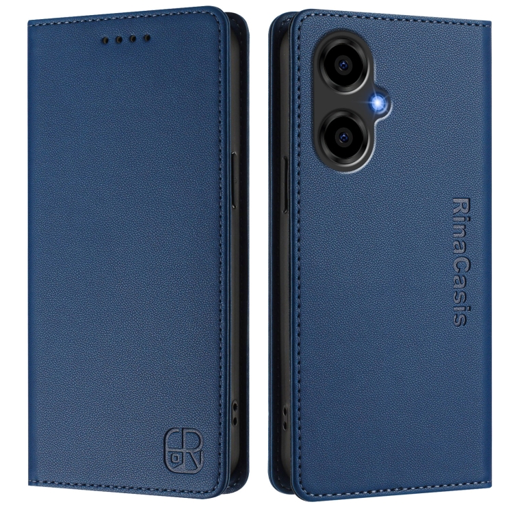Funda de Cuero RFID para Blu G64 RC01 con Doble Pliegue y Succión Magnética (Azul Oscuro)