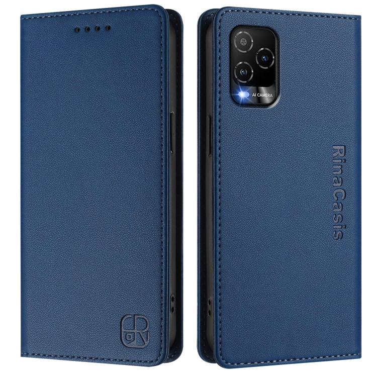 Funda de Cuero RFID para Blu View 5 Pro RC01 con Doble Pliegue y Succión Magnética (Azul Oscuro)