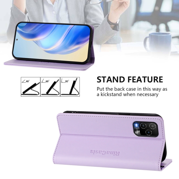 Funda de Cuero RFID para Blu View 5 Pro RC01 con Doble Pliegue y Succión Magnética (Morado Claro)