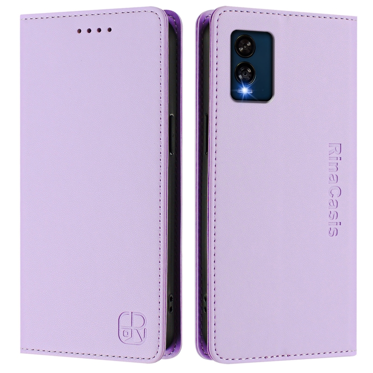 Funda de Cuero RFID para Teléfono Blu View Speed 5G B1550Vl Rc01 con Doble Pliegue y Succión Magnética (Morado Claro)