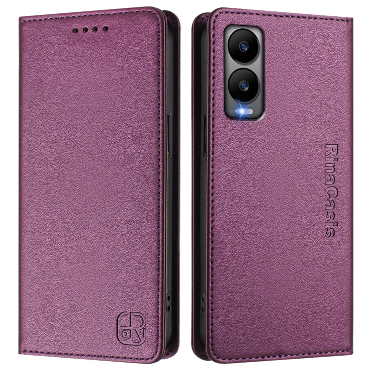 Funda de Cuero Rfid para Teléfono Cricket Debut S3 Rc01 con Doble Pliegue y Succión Magnética (Violeta)