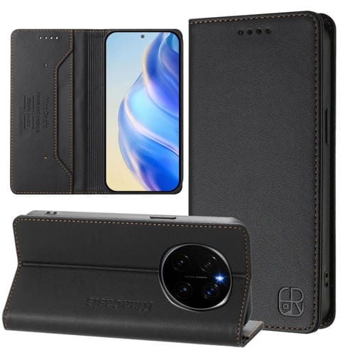 Funda de Cuero Rfid para Honor Magic7 Pro Rc01 con Doble Pliegue y Succión Magnética (Negra)