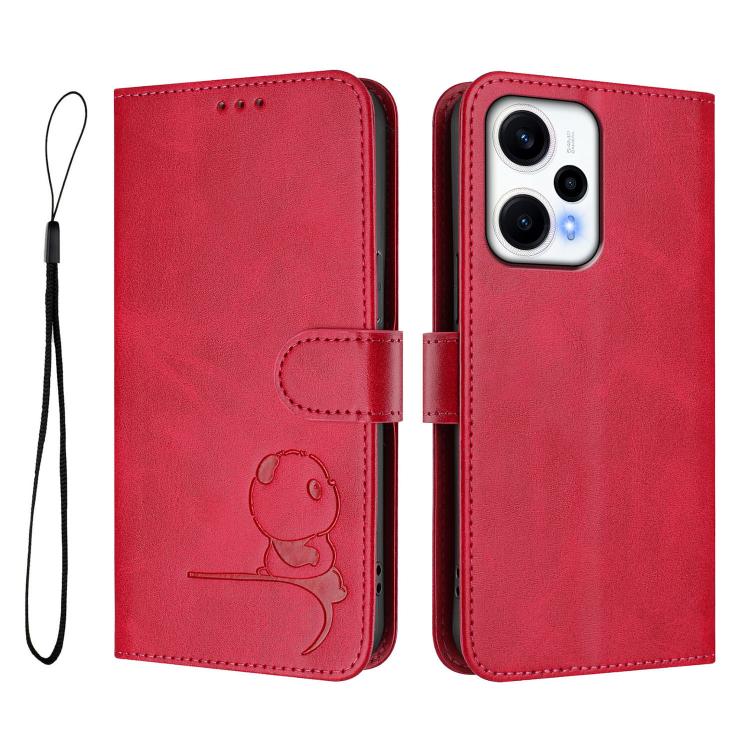 Funda de cuero RFID con estampado de panda y cordón para Redmi Note 12 Turbo y Xiaomi Poco F5 (rosa)