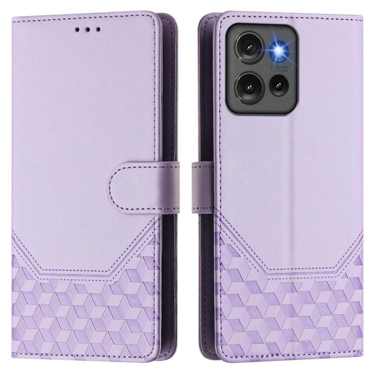 Funda de Cuero Rfid con Relieve de Panal Global para Motorola Edge 50 5G (Morado Claro)