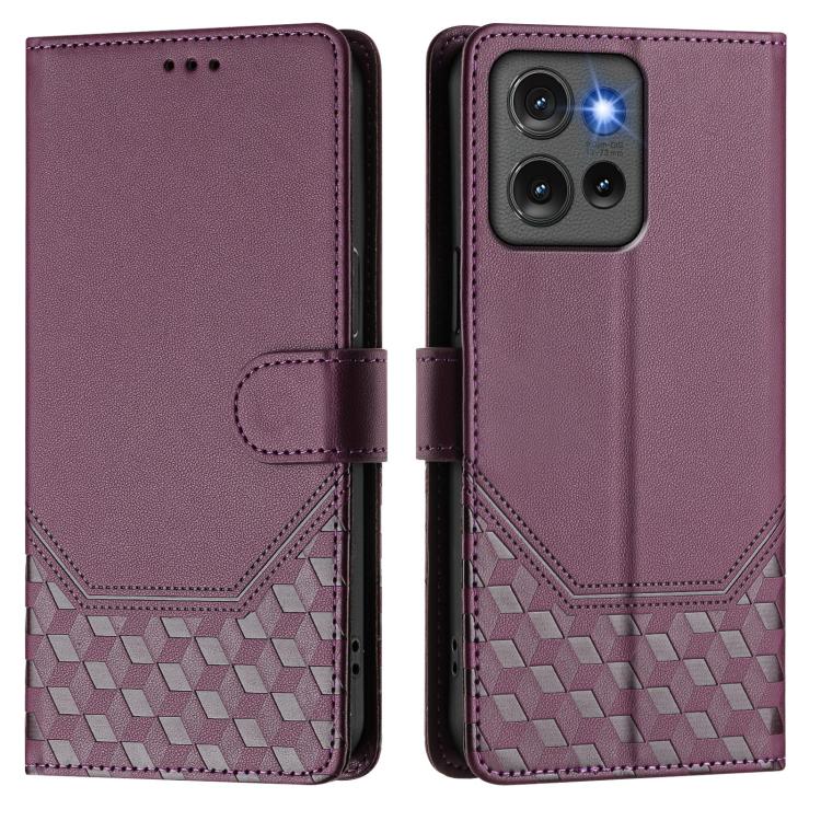 Funda de Cuero Rfid con Relieve de Panal Global para Motorola Edge 50 5G (Violeta)