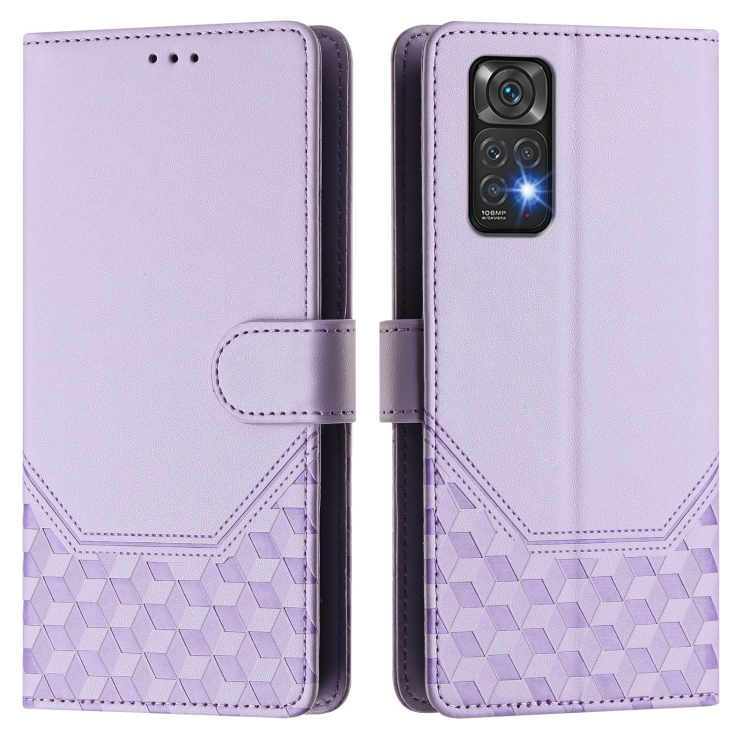 Funda de Cuero Rfid con Relieve de Panal Global para Redmi Note 11 4G / 11S 4G / 12S (Morado Claro)