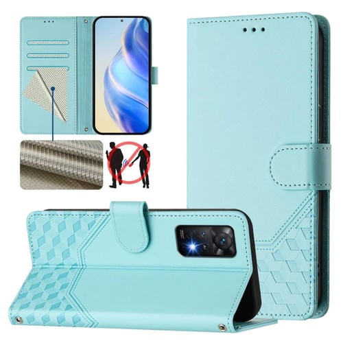 Funda de Cuero Rfid con Relieve de Panal Global para Redmi Note 11 Pro 5G/4G (Verde Menta)