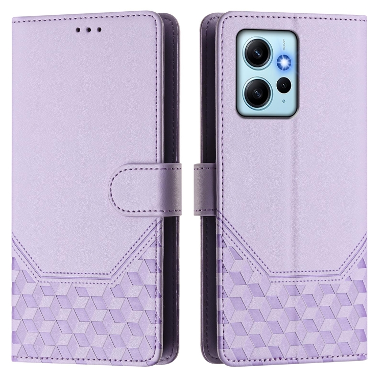 Funda de Cuero Rfid con Relieve de Panal Global para Redmi Note 12 4G (Morado Claro)
