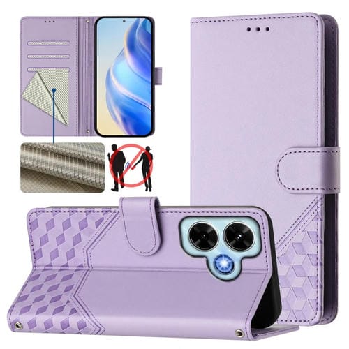 Funda de Cuero Rfid con Relieve de Panal Global para Redmi Note 13 4G (Morado Claro)