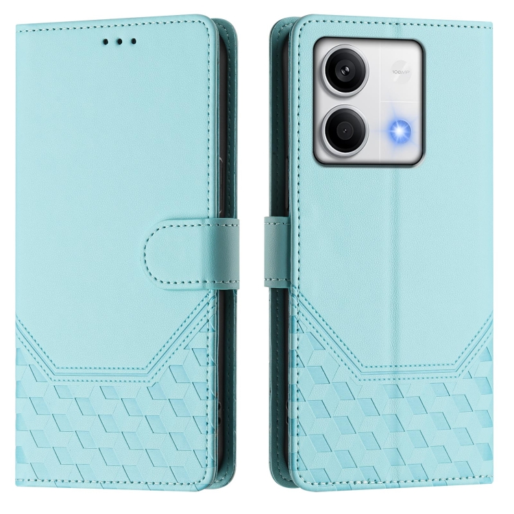 Funda de Cuero Rfid con Relieve de Panal Global para Redmi Note 13 5G (Verde Menta)