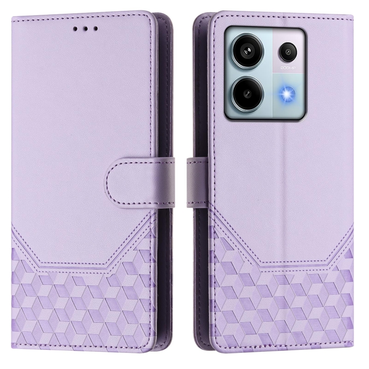 Funda de Cuero Rfid con Relieve de Panal Global para Redmi Note 13 Pro 5G (Morado Claro)