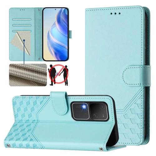 Funda de Cuero Rfid con Relieve de Panal Global para Vivo V30 5G/V30 Pro (Verde Menta)