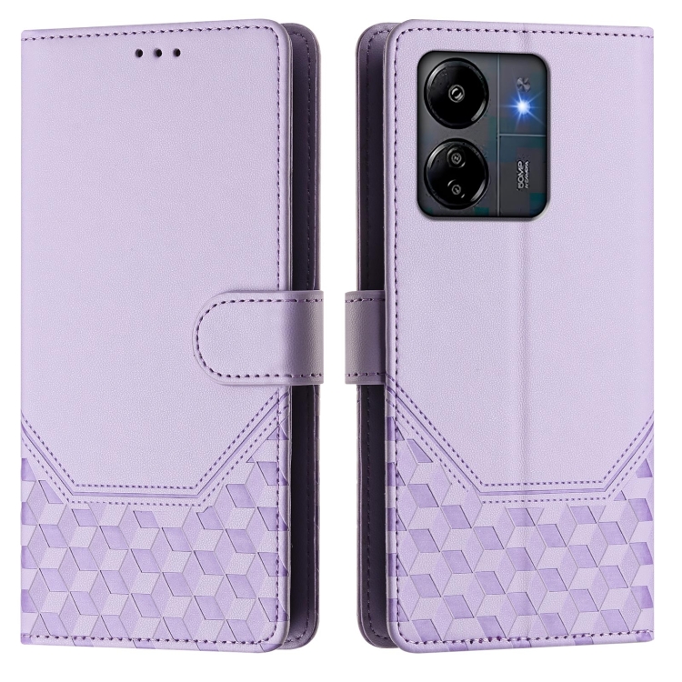 Funda de Cuero Rfid con Relieve de Panal para Redmi 13C 4G (Morado Claro)