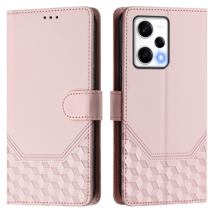 Funda de Cuero Rfid con Relieve de Panal para Redmi Note 12 Explorer/12 Pro+ 5G (Rosa)
