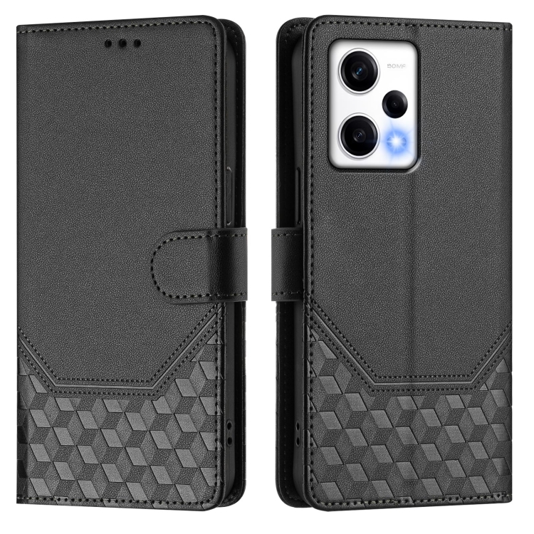 Funda de Cuero Rfid con Relieve de Panal para Redmi Note 12 Pro Speed / 12 Pro 5G (Negra)