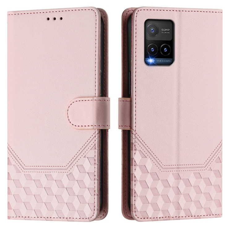 Funda de Cuero Rfid con Relieve de Panal para Vivo Y33S 4G / Y21 2021 / Y21S / Y21T (Rosa)