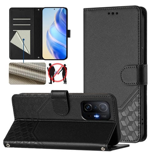 Funda de Cuero Rfid con Relieve de Panal para Xiaomi 11T/11T Pro (Negra)