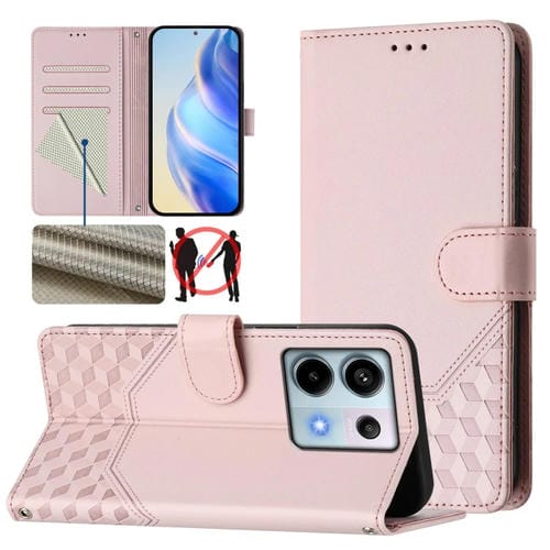 Funda de Cuero Rfid con Relieve de Panal para Xiaomi Poco X6 5G (Rosa)