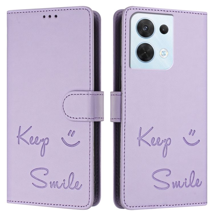 Funda de Cuero Rfid con Relieve de Sonrisa Global para Oppo Reno8 5G (Morado Claro)