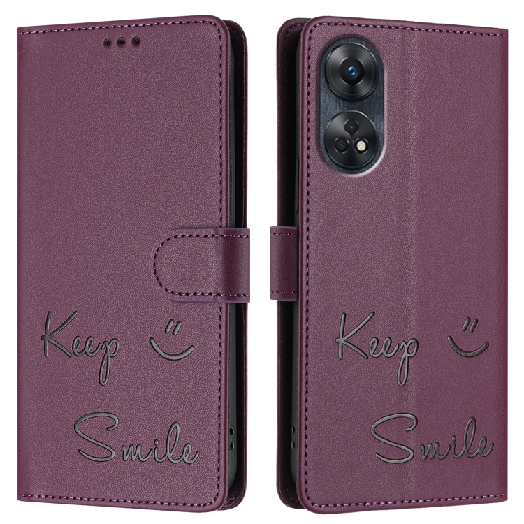 Funda de Cuero Rfid con Relieve de Sonrisa Global para Oppo Reno8 T 4G (Violeta)